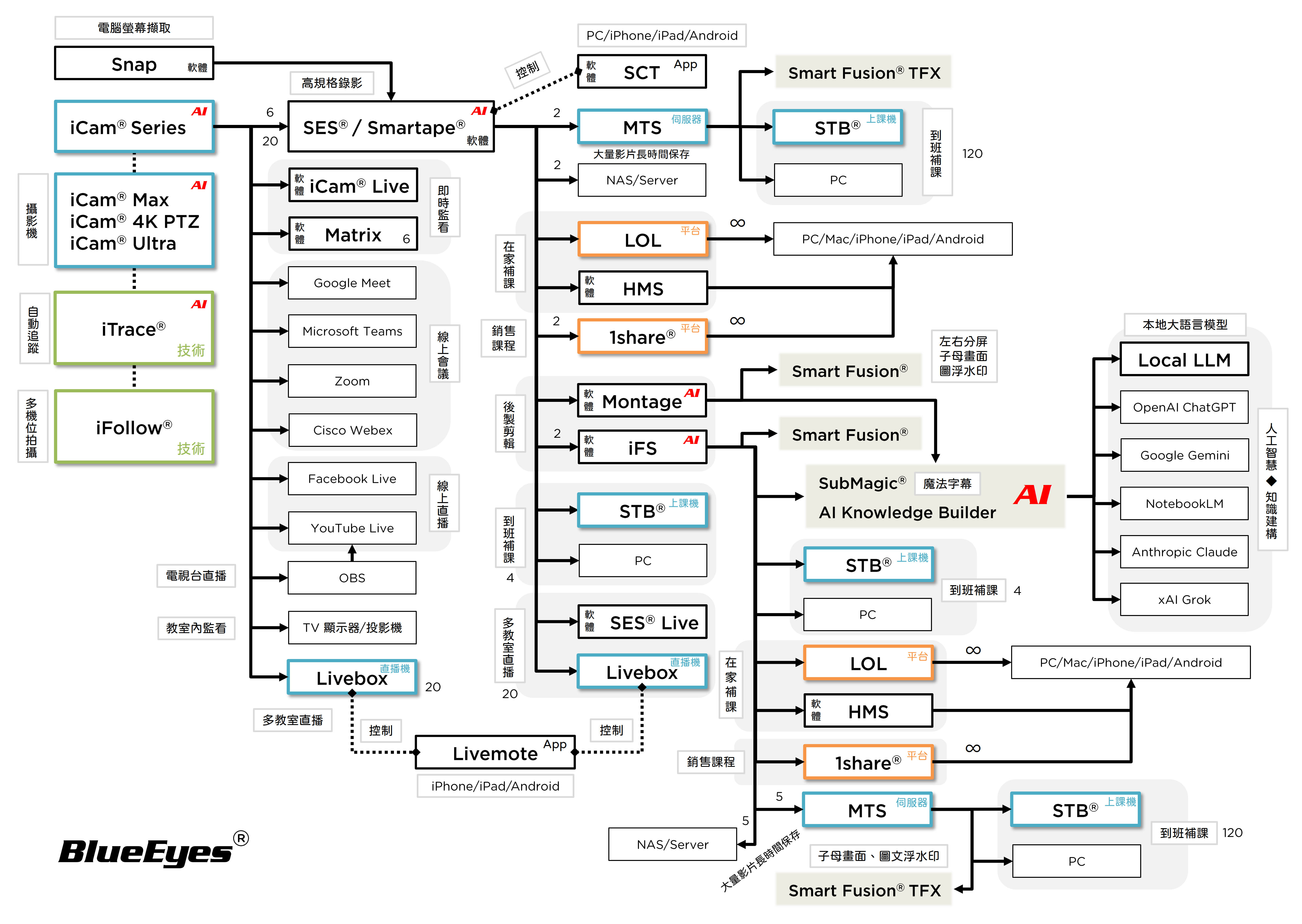 iLearning 教育培訓創新架構 | 創新技術 | 補課系統整合智慧點名、錄影雲端儲存、學生補課自助預約、線上直播互動平台,輕鬆管理教學紀錄 - 藍眼科技