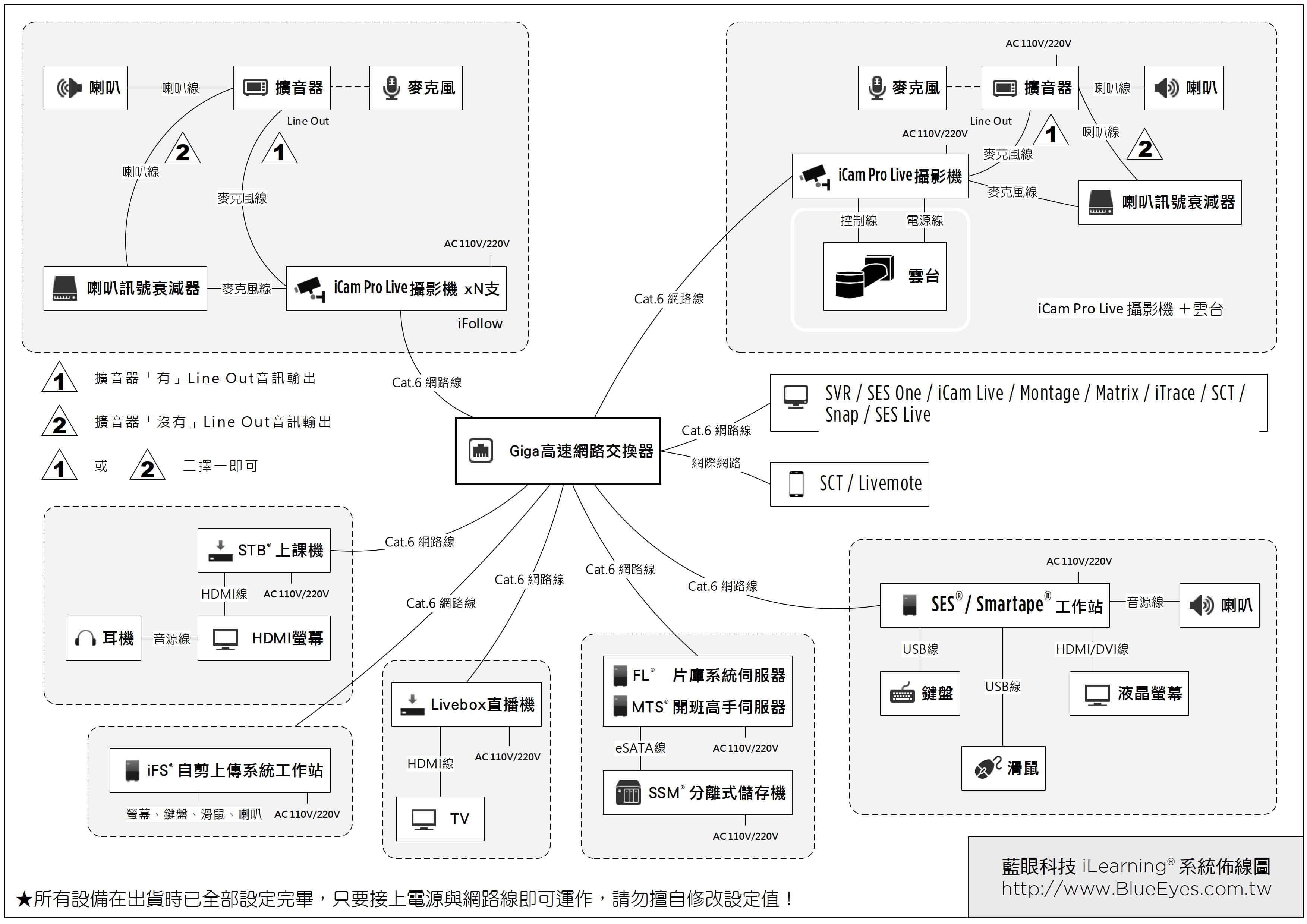 iCam Pro Live 应用于 iLearning 系统布线图 | 创新技术 | 补课系统集成智能点名、录影云存储、学生补课自助预约、在线直播互动平台,轻松管理教学记录 - 蓝眼科技